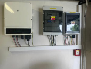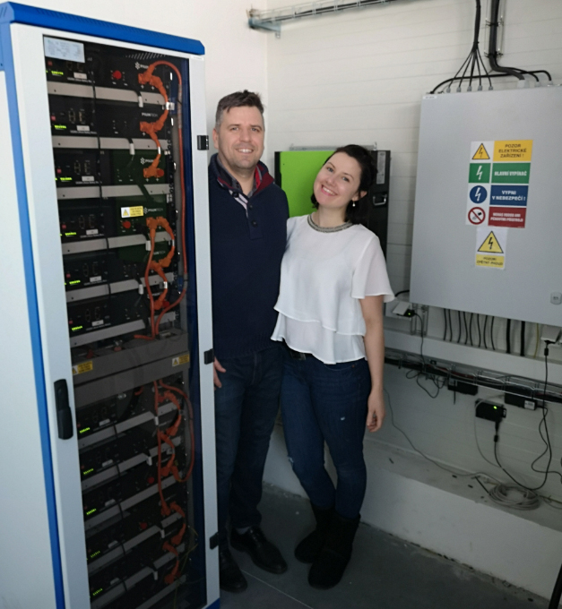 b) bateriového úložiště: integrovaný bateriový systém s lithiovými bateriemi, který se skládá z 6+6 akumulátorových bloků uložených v temperovaném Racku 19 s celkovou kapacitou 28,8 kWh, které slouží k ukládání nespotřebované vyrobené energie z OZE.