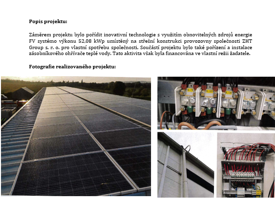 | Název projektu: | Pořízení fotovoltaického systému pro společnost ZHT Group s.r.o. |