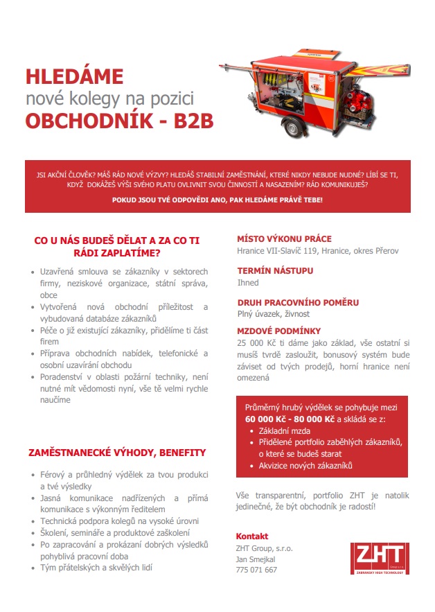 Pokud tě naše nabídka zaujala, zašli svůj životopis na email asistentka@produkce2.northmoravians.cz nebo volej na telefonní číslo 702 000 885. Rádi poznáme všechny, kdo mají odhodlání přispět k naší misi poskytování špičkových výrobků v oboru hasící techniky.