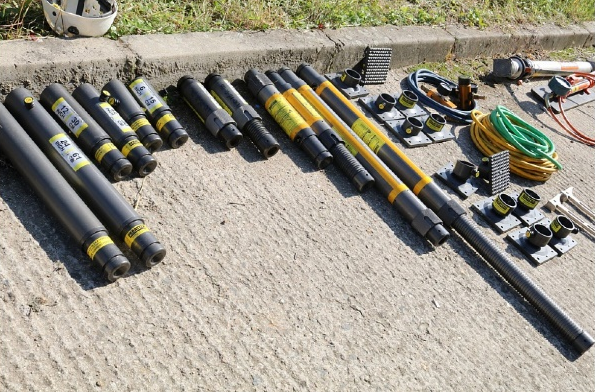 Zatížení šedé tyče ve vertikálním zatížení je cca 10 tun pod bezpečnostním faktorem. Tzn., že uváděné pracovní zatížení (10 t), které zařízení snáší, může být až několikanásobně vyšší, než dojde k jeho destrukci.
