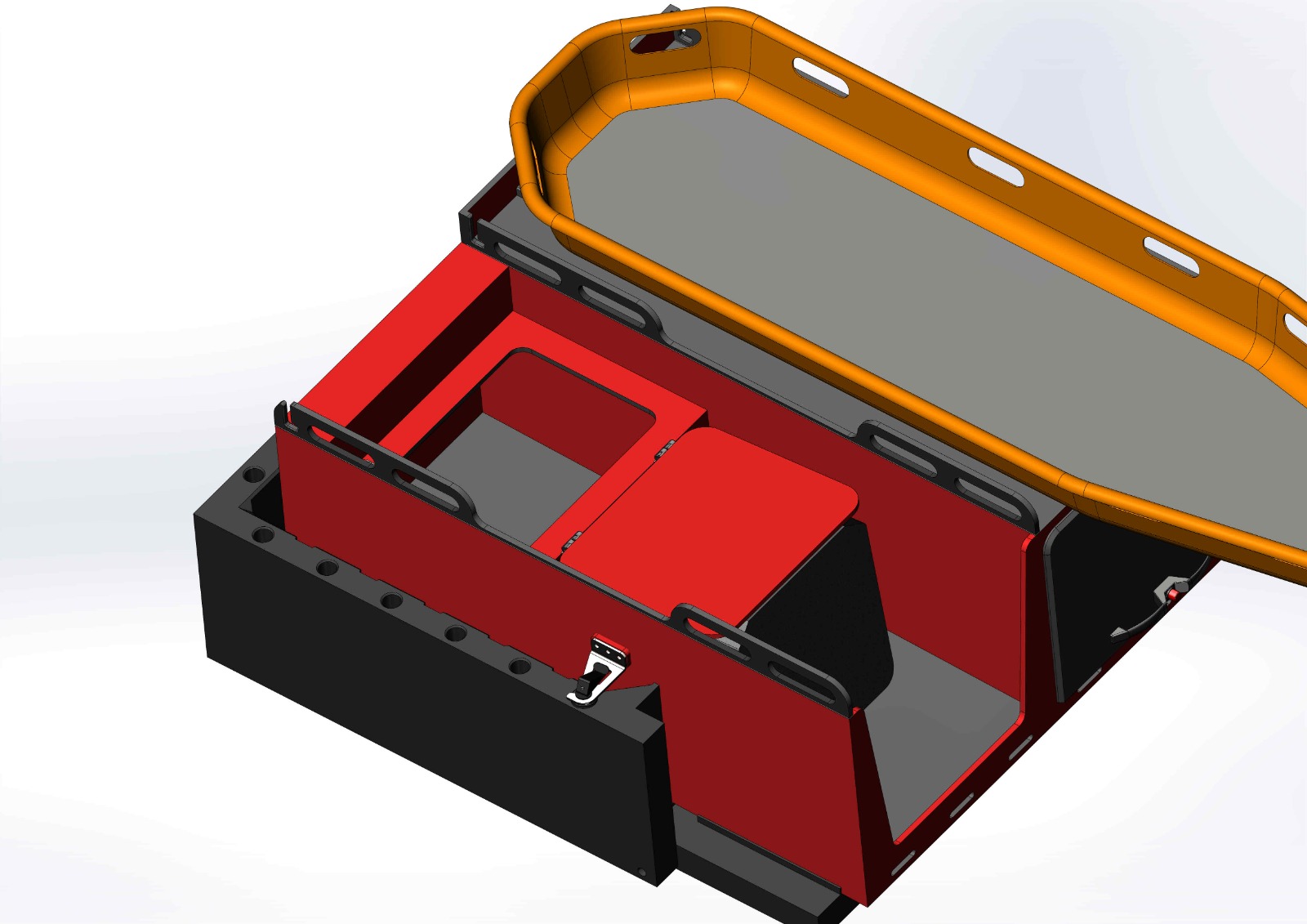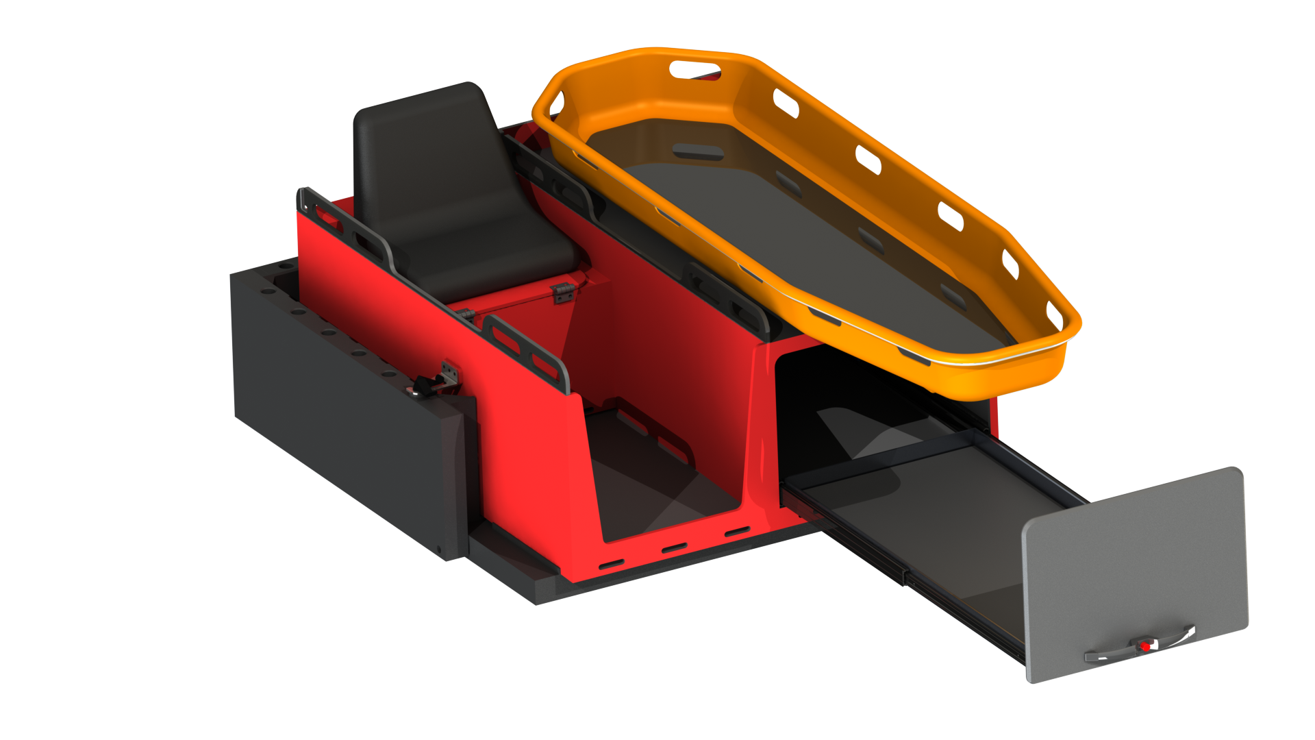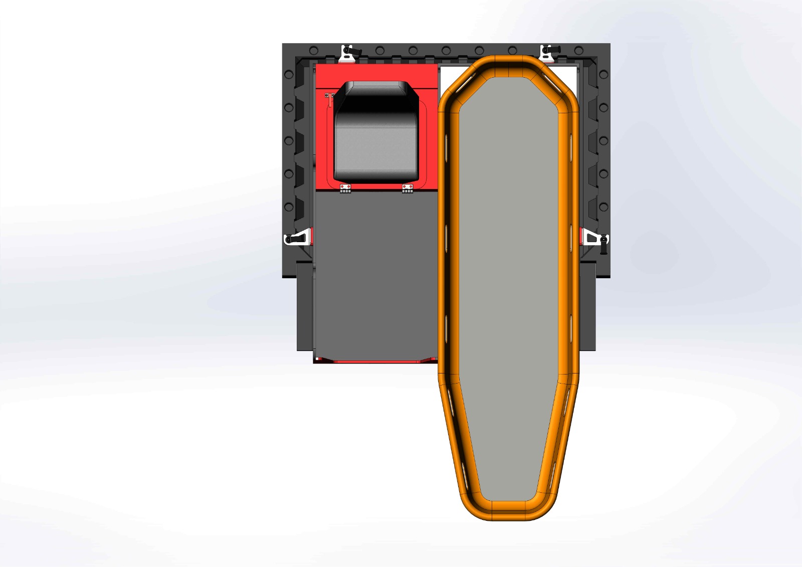 V galerii si prohlédněte verzi modulu s výsuvem na vybavení, odklápěcí sedačkou s úložným prostorem, plochou pro nosítka a podlahou s protiskluzovým nátěrem.