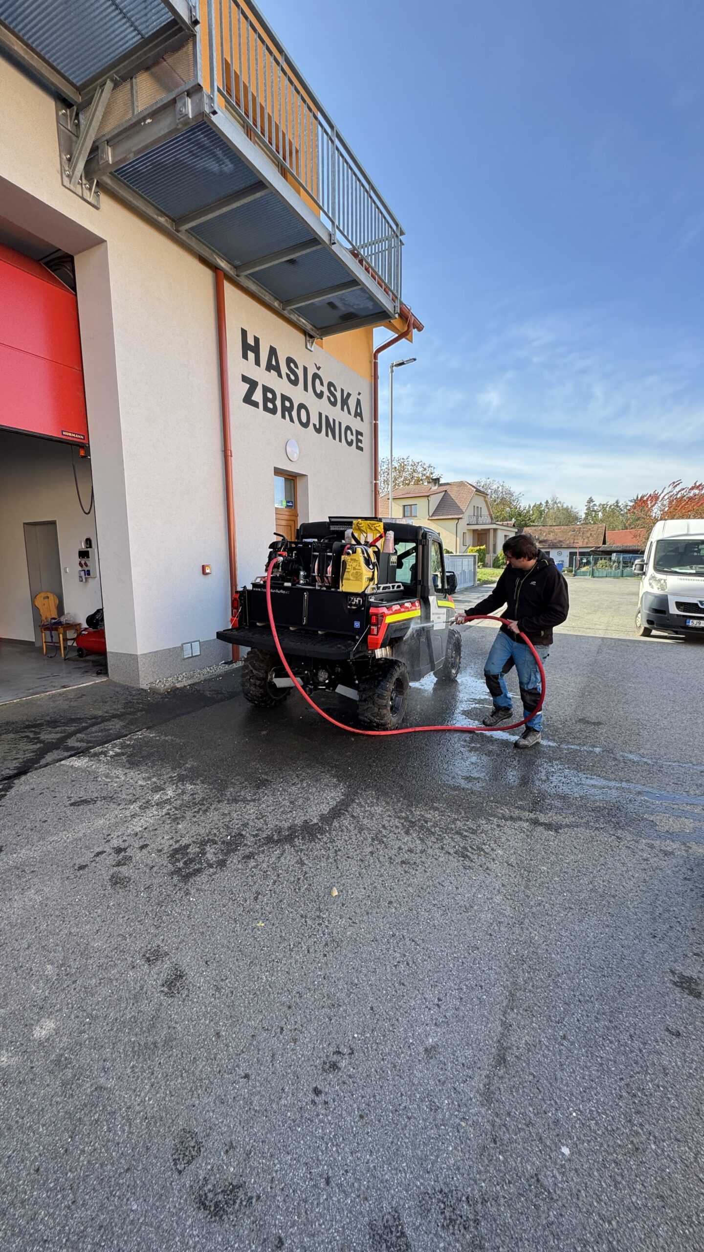 Součástí předání čtyřkolky bylo také zaškolení obsluhy na její správné používání a manipulaci s hasicím modulem. Školení zahrnovalo jak teoretickou, tak praktickou část. Nejprve jsme se zaměřili na jízdní vlastnosti čtyřkolky, její různé režimy a obsluhu, aby si uživatelé mohli být jistí v jakékoliv situaci. Následně jsme prošli základními postupy údržby, aby byla čtyřkolka vždy v perfektním technickém stavu.