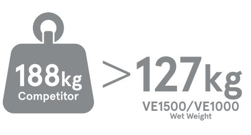 Stříkačka TOHATSU VE 1500 disponuje nízkou hmotností, pouhých 107 kg. Lze ji bez problémů přenášet pouze dvěma hasiči, a to i v nerovném terénu.