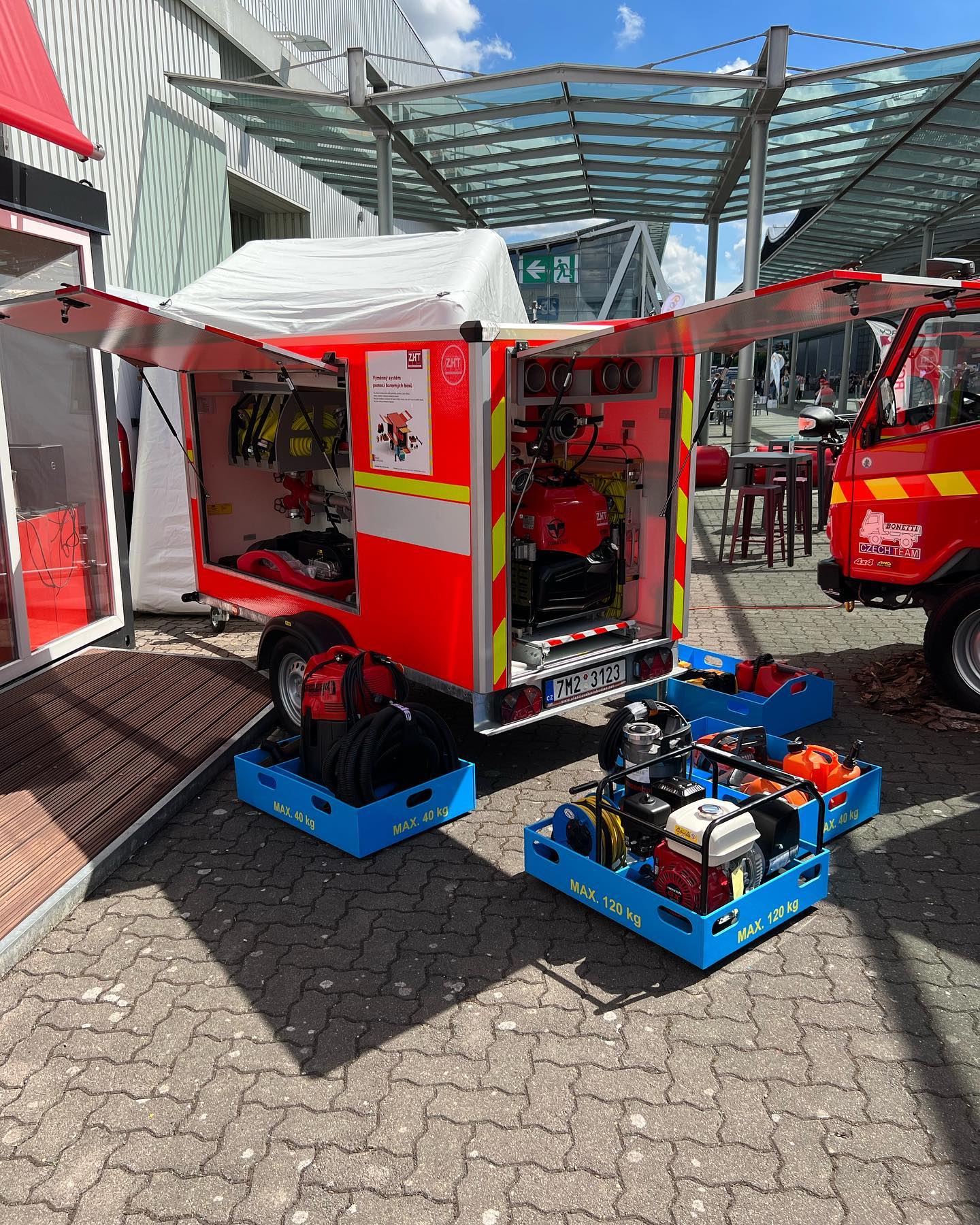 Naše firma se představila na největší hasičské výstavě na světě – na Interschutzu v Hannoveru. K vidění byly na našem stánku novinky jako plovoucí čerpadla na dálkové ovládání, dále napříkladskimmer pro sběr nebezpečných látek z hladiny či speciální nástavby na čtyřkolky pro hasiče.