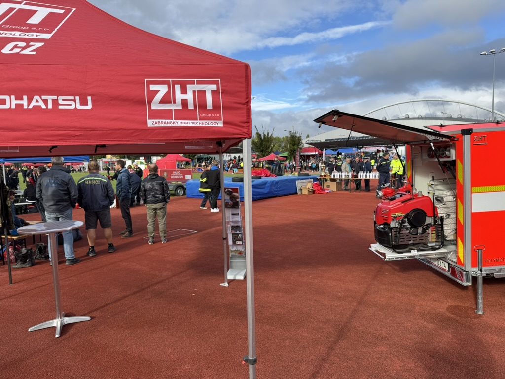 Naše společnost ZHT Group, jakožto hlavní sponzor, představila svůj přívěs pro hašení s přenosnou motorovou stříkačkou Tohatsu VE 1500. Tato moderní technika přitahovala pozornost profesionálů i nadšenců, kteří měli možnost vidět její praktické využití.